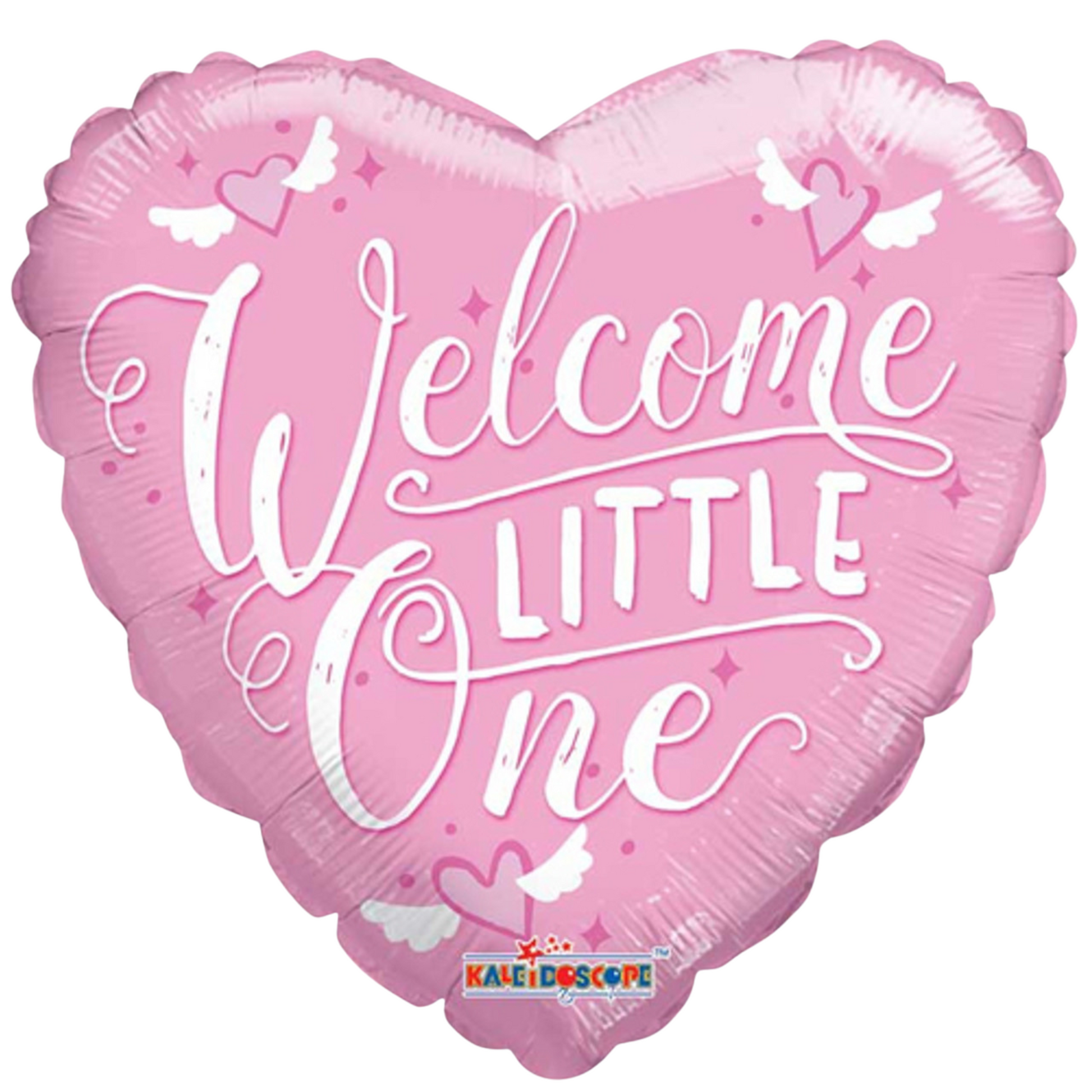Welcome your newest bundle of joy with this adorable 18-inch heart-shaped “Welcome Little One” foil balloon. Featuring a soft pink background, elegant white script lettering, and cute heart-with-wings accents, it’s the perfect decoration for baby showers, welcome home celebrations, or newborn photo setups.