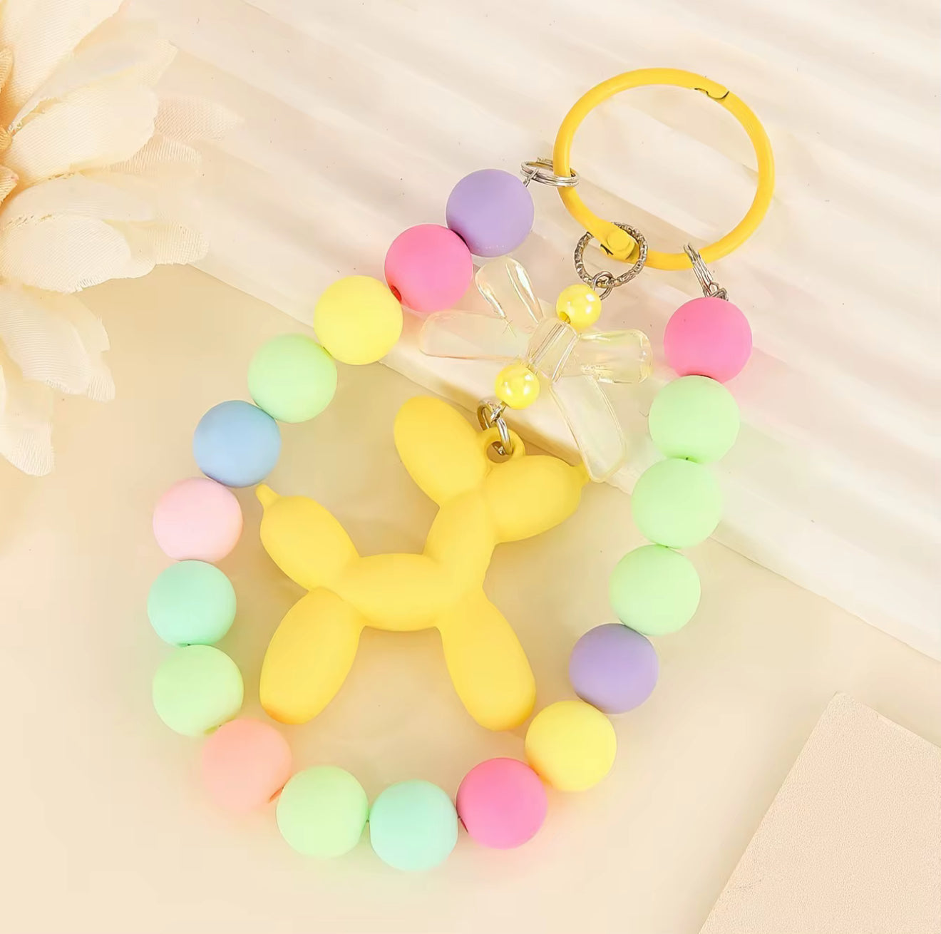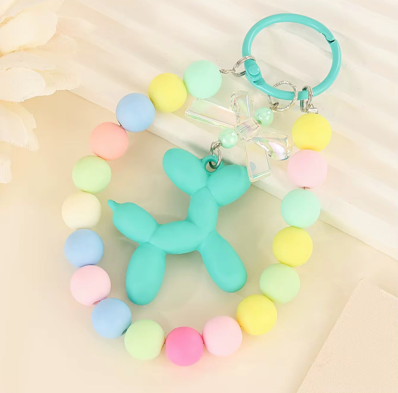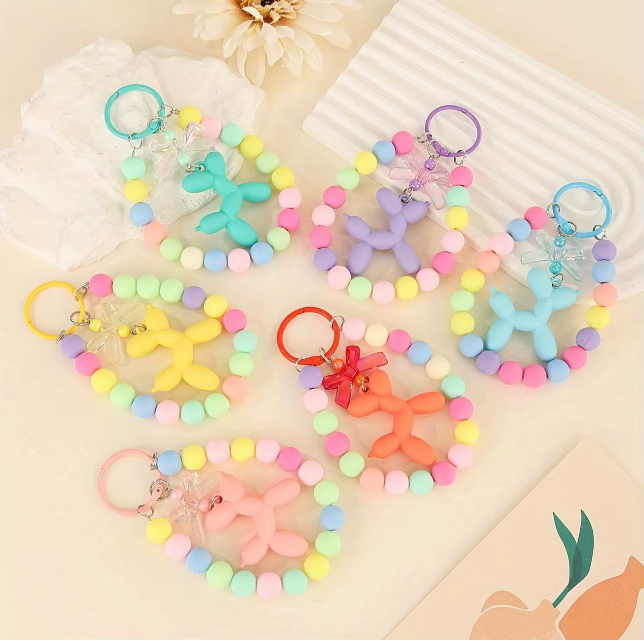 Take the fun of balloons with you every day with the Balloon Dog Beaded Keychain from BalloonCraft by Mila. Designed with vibrant pastel beads and a balloon dog charm, itâs more than a keychain â itâs a pop of joy for your keys, bag, or backpack.