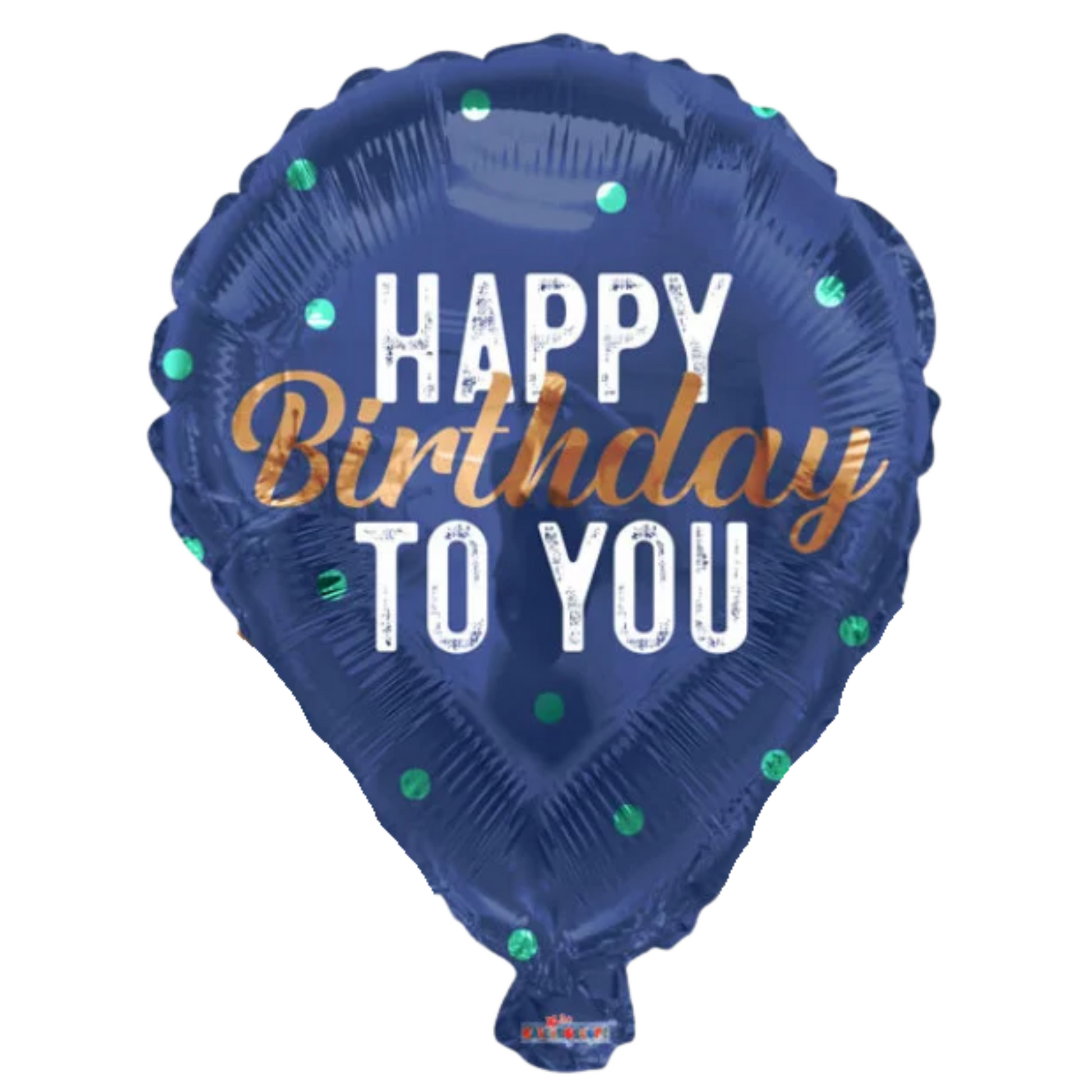 1 Large Foil Balloon – Navy balloon shape with “Happy Birthday to You” in bold typography