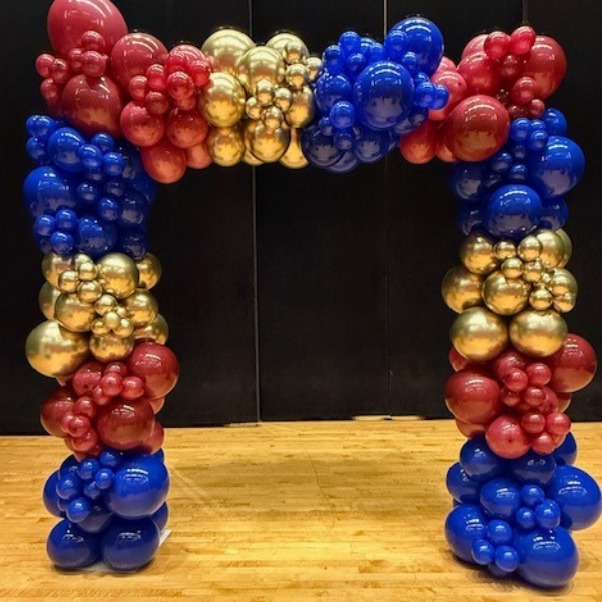 Balloon arches and columns for parties, grand openings, and photo backdrops