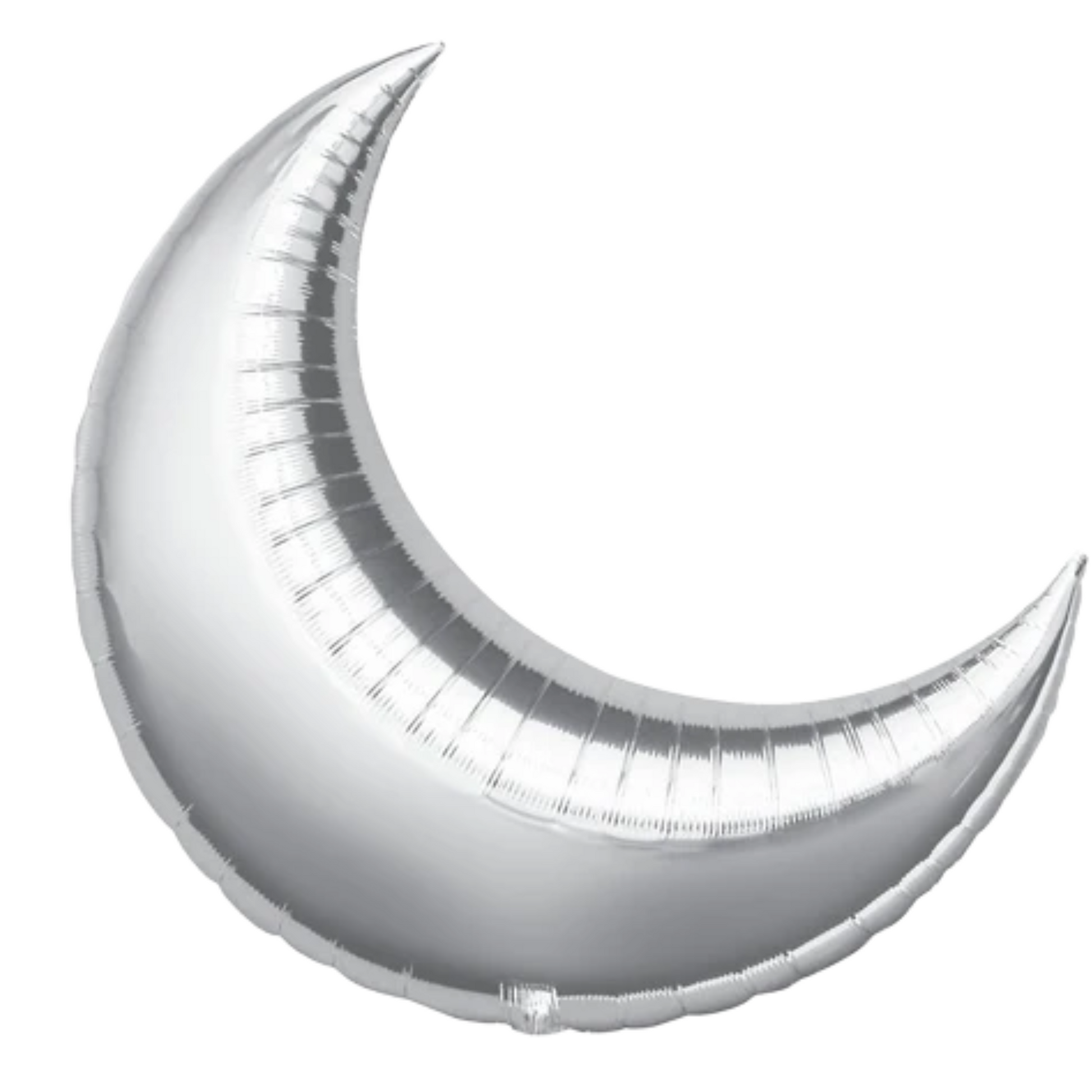 Add a touch of elegance and magic to your celebration with this 35-inch silver crescent moon foil balloon. Its sleek metallic finish makes it perfect for celestial-themed events, weddings, birthdays, New Year’s Eve, and baby showers.